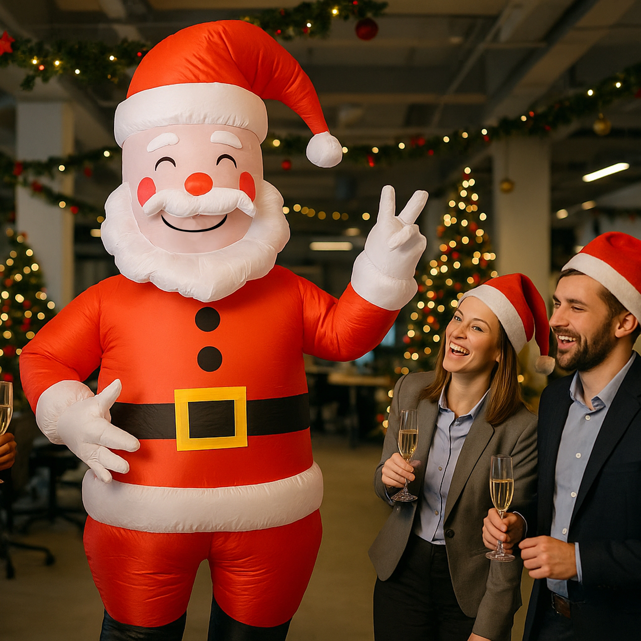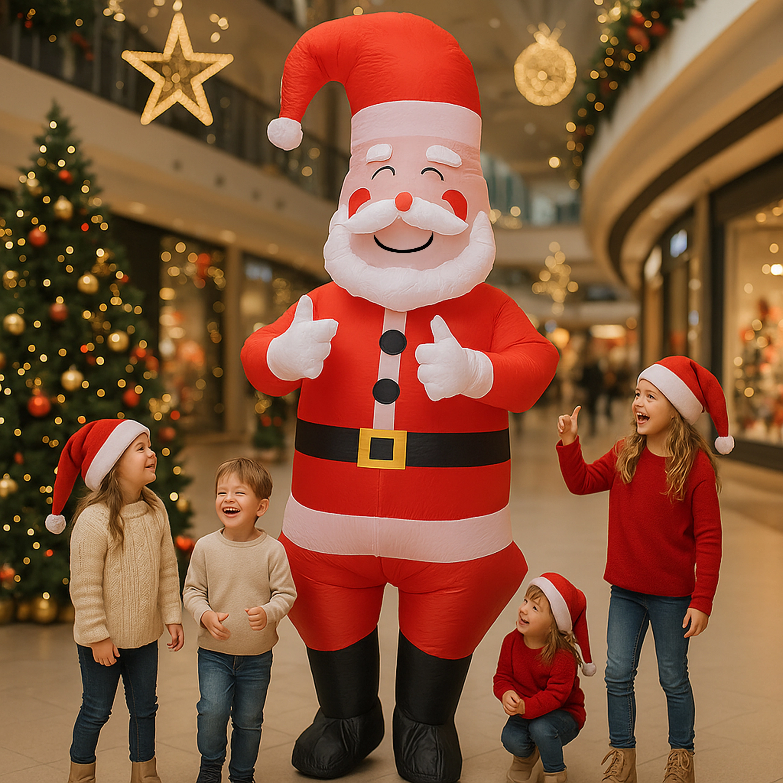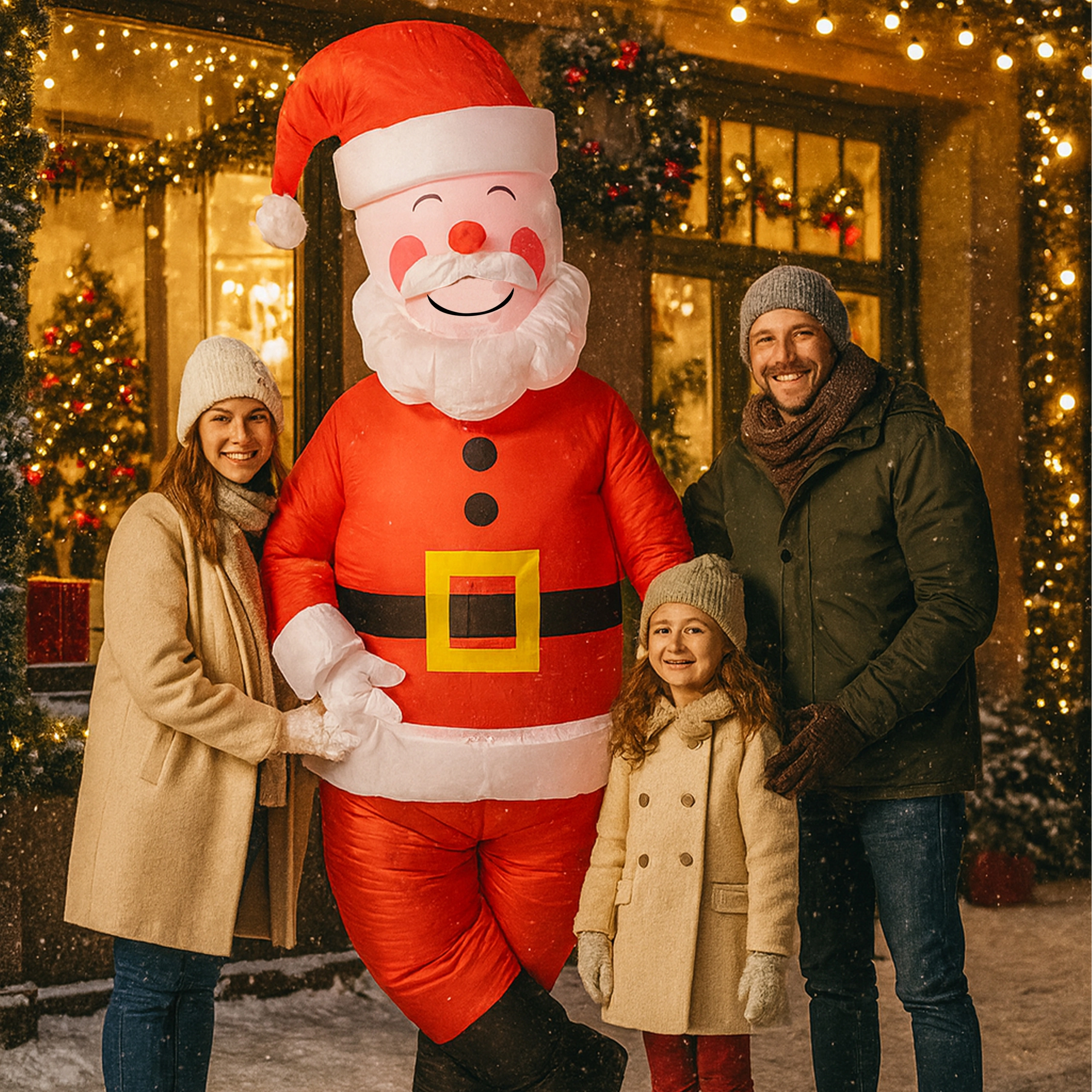 Szórakoztató és könnyen használható felfújható Mikulás jelmez felnőtteknek (kb. 150–190 cm magasságig), ideális karácsonyi bulikra, rendezvényekre és otthoni szórakozáshoz. A könnyű és kényelmes anyag a mellékelt turbina segítségével gyorsan megtelik levegővel, így pillanatok alatt felejthetetlen ünnepi hangulatot teremthetsz.