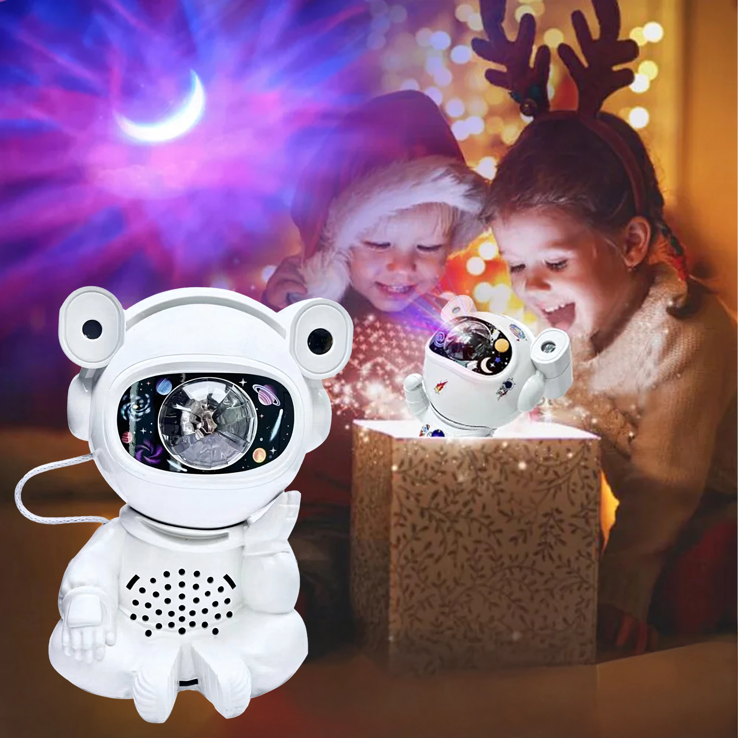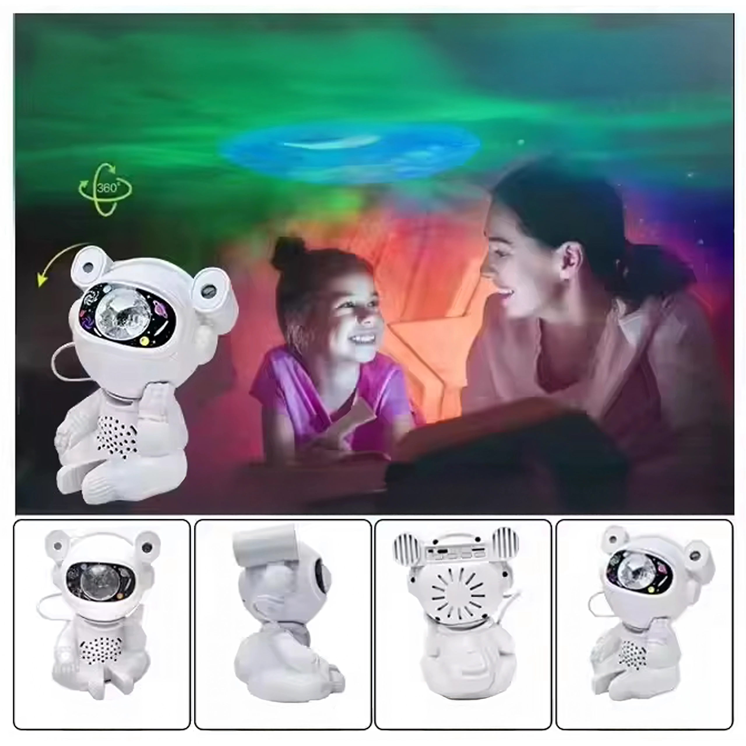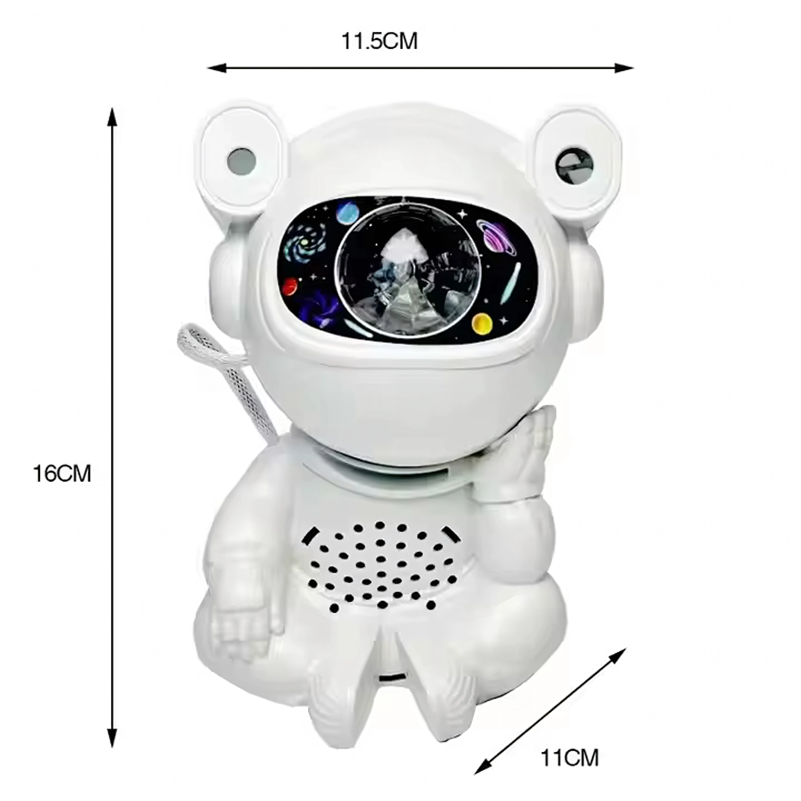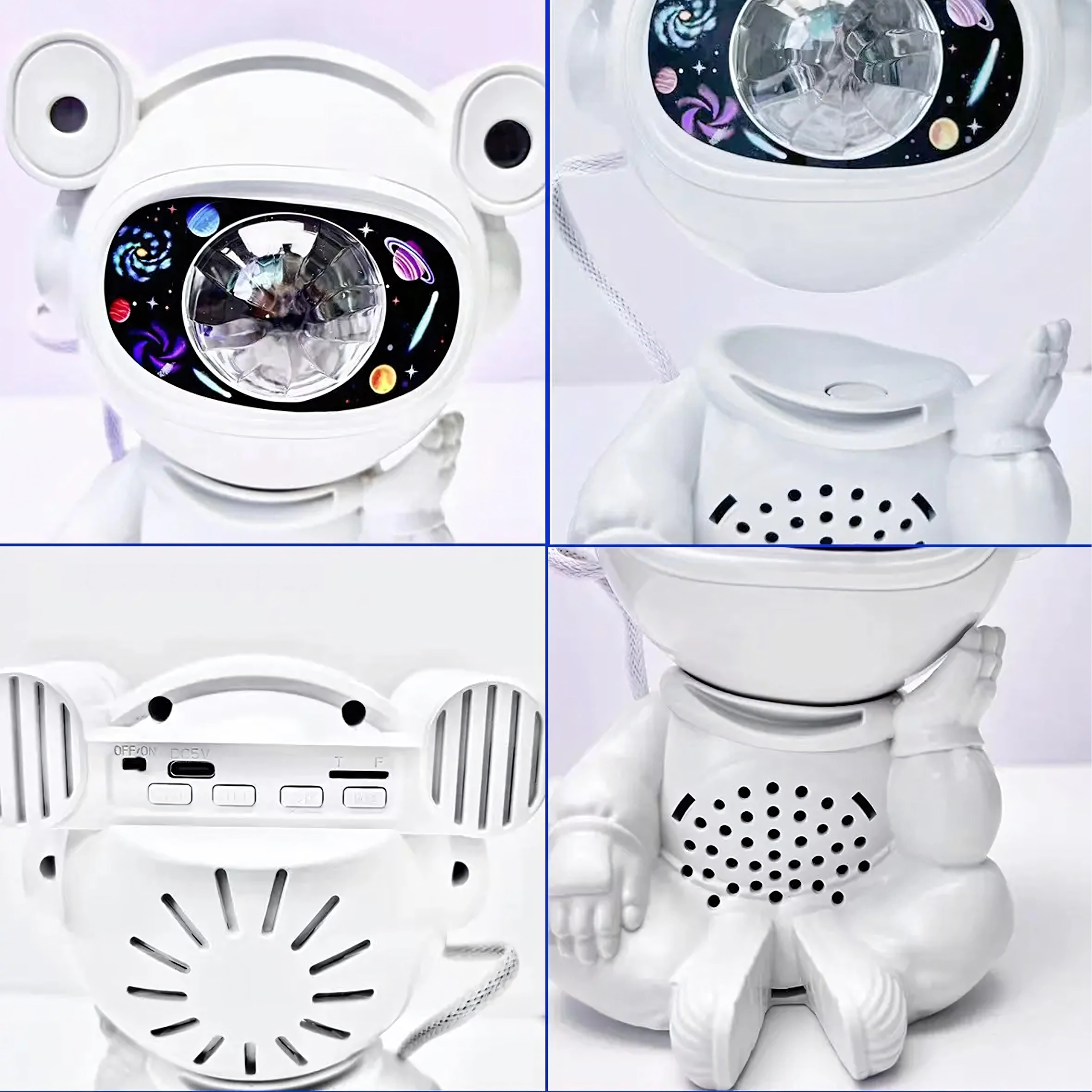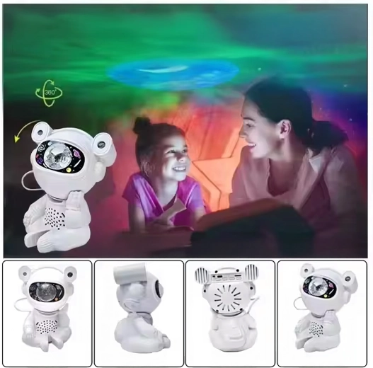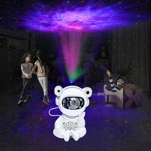 Fedezd fel a nyugodt elalvást és a megnyugtató csillagvetítést a mozgatható fejű űrhajós lámpával. A vetítés a mennyezeten és a falakon lenyűgöző csillag- és ködgalaxist hoz létre, amely serkenti a gyerekek fantáziáját és kellemes hangulatot teremt a pihenéshez.