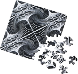 Élvezze az egyedülálló kirakóélményt a CURIOSI Q Shimmer: Illúzió kirakóval. A modern, eredeti motívumnak és a szokatlan formájú elemeknek köszönhetően minden összeállítás szórakoztató kihívás, amely próbára teszi türelmét és éleslátását.