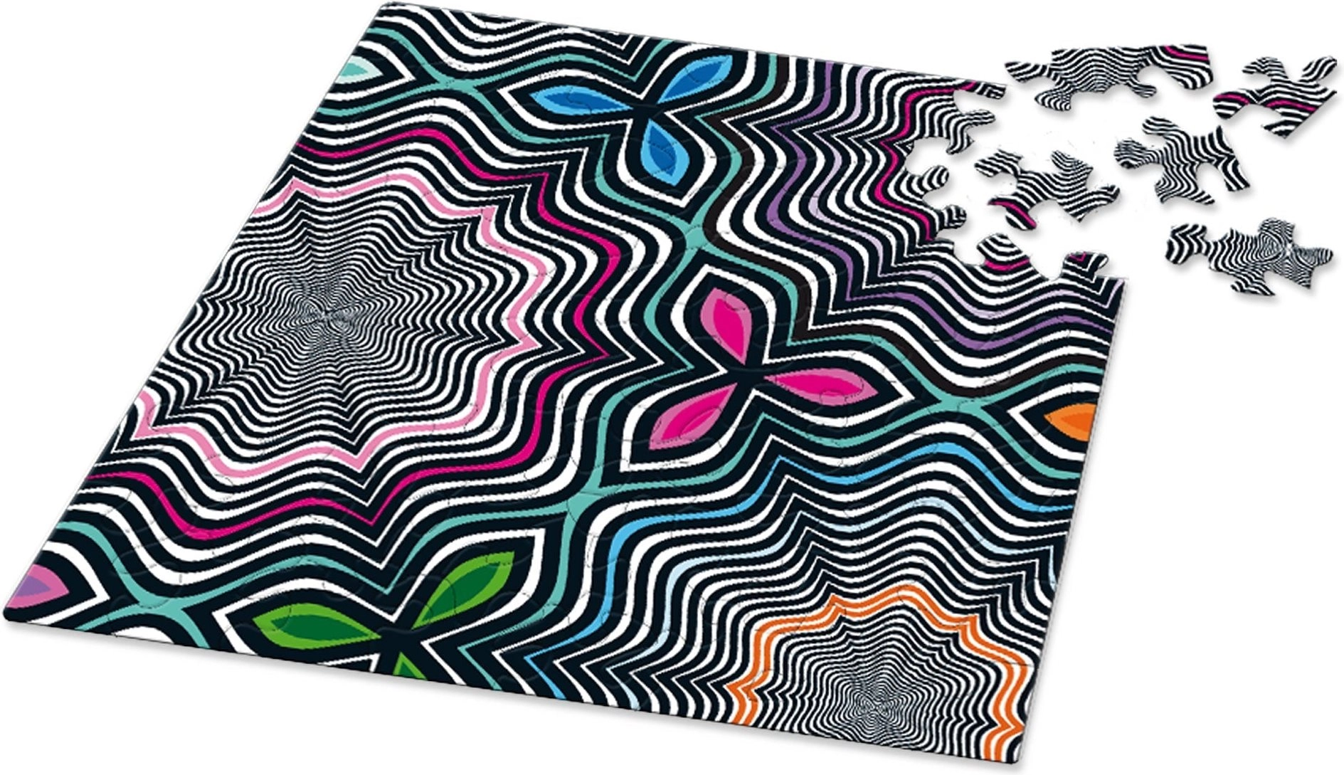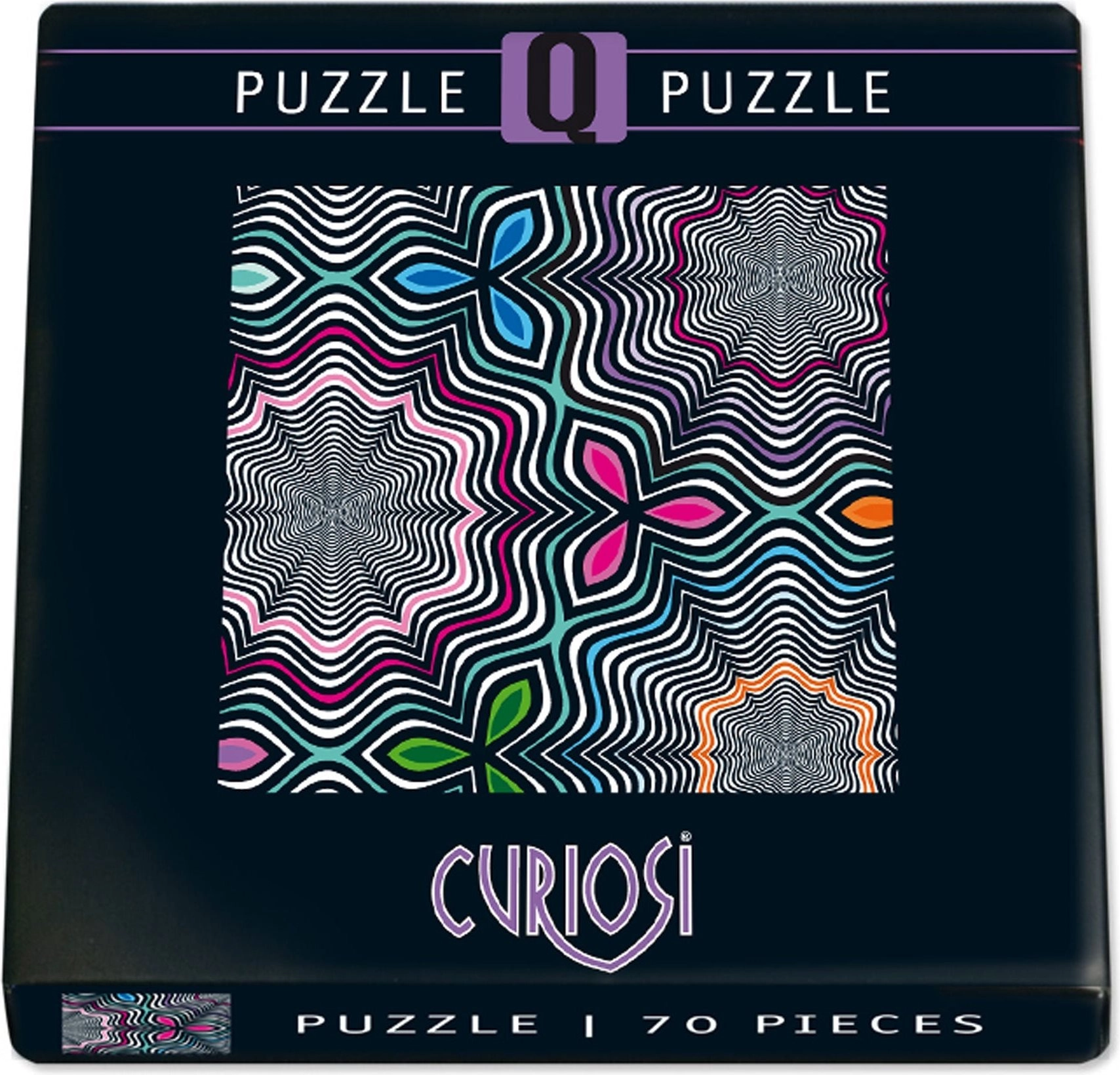 A Curiosi Q Shake VI minta egyedülálló kirakóélményt nyújt. A szokatlan formájú darabok fenntartják a figyelmet és a szórakozást, miközben az elegáns, négyzetes formátum remekül mutat polcon vagy keretben.