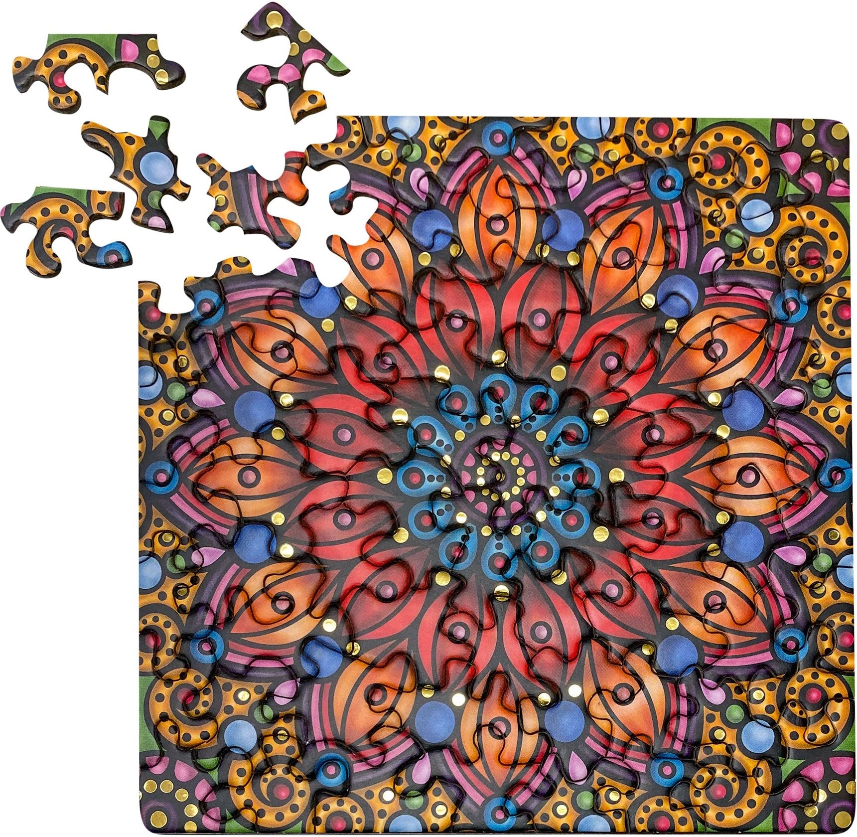 Ez a négyzet alakú puzzle örömet okoz mindenkinek, aki szereti a kihívásokat kis méretben. A szokatlan alakú darabok miatt az összerakás szórakoztató és vizuálisan figyelemfelkeltő, miközben az aranyfény luxus hatást kölcsönöz a kész képnek.