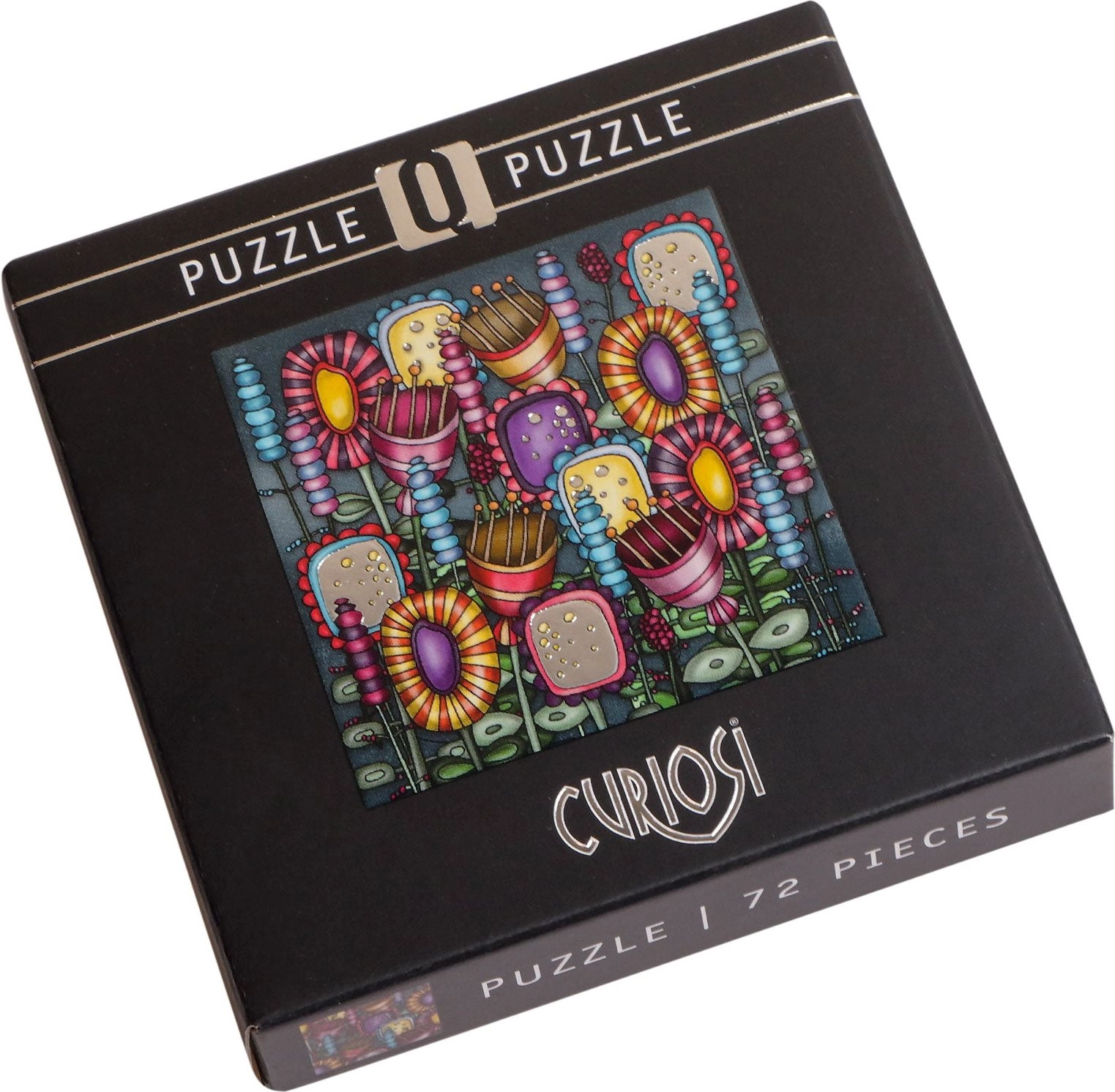 A CURIOSI Q Silver négyszögletes puzzle színes virágmotívummal mindenkit megörvendeztet, aki szereti a kihívásokat és az esztétikát. A szokatlan darabformák még szórakoztatóbbá teszik az összeállítást, míg az ezüsthatás különleges ragyogást ad a motívumnak.