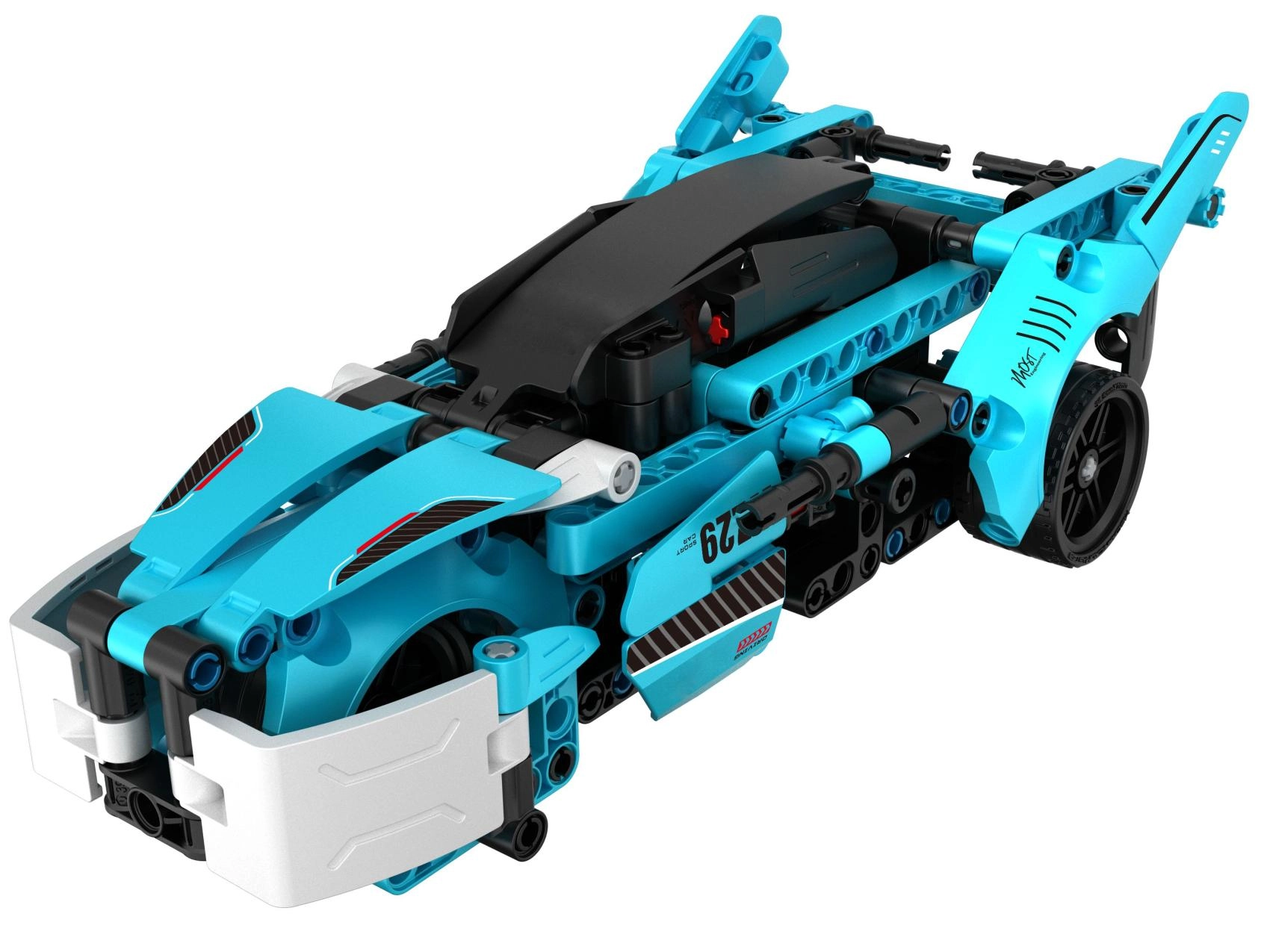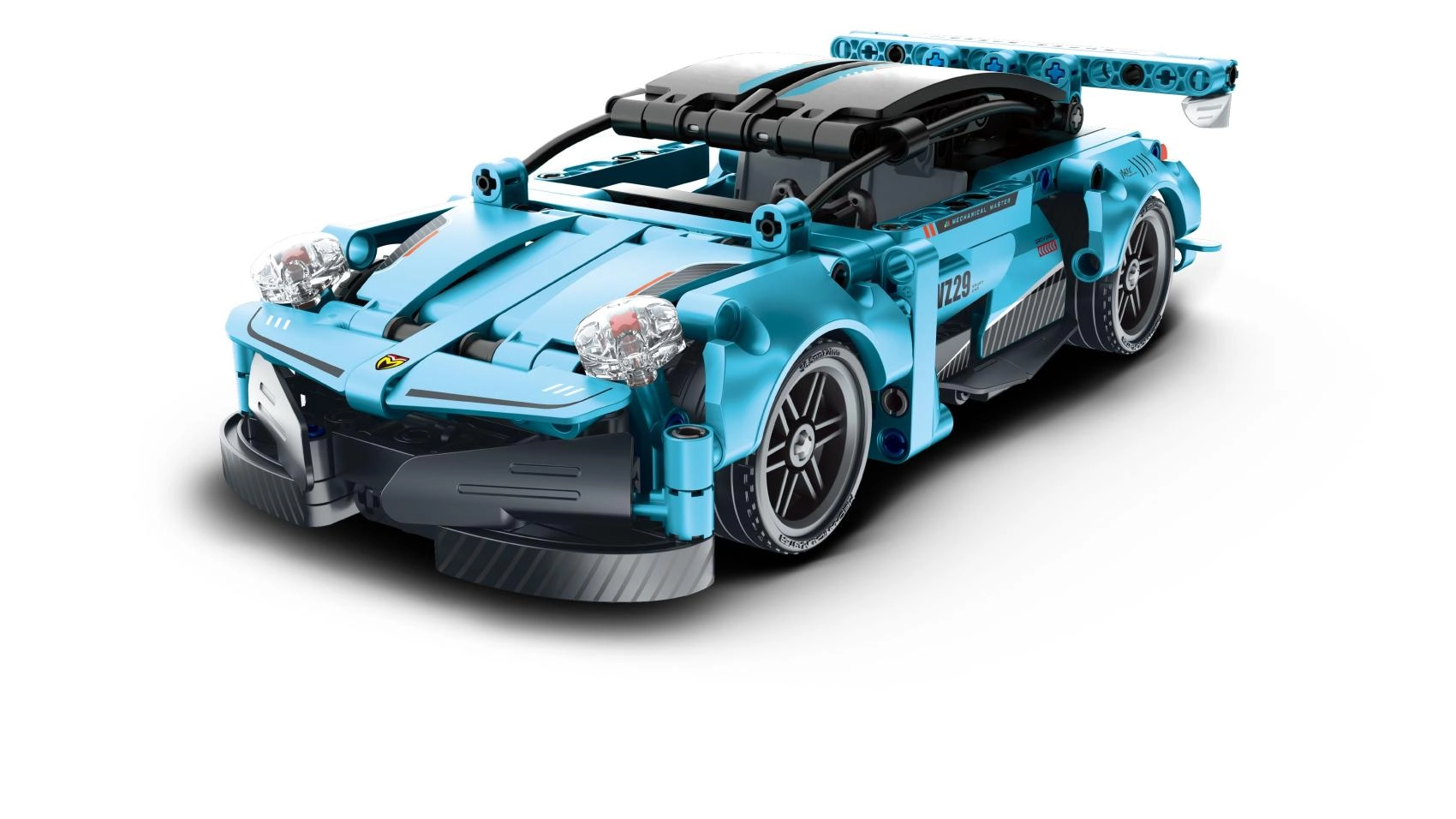 Építsd meg saját versenyautódat, és irány a pálya! Ez a 2 az 1-ben készlet lehetővé teszi egy elegáns utcai autó vagy egy szupergyors versenyspeciál összeállítását hátsó szárnnyal. Élvezd a visszahúzós meghajtást, a mozgó elemeket és a kék–fekete dizájnt, amely első pillantásra megragadja a figyelmet.