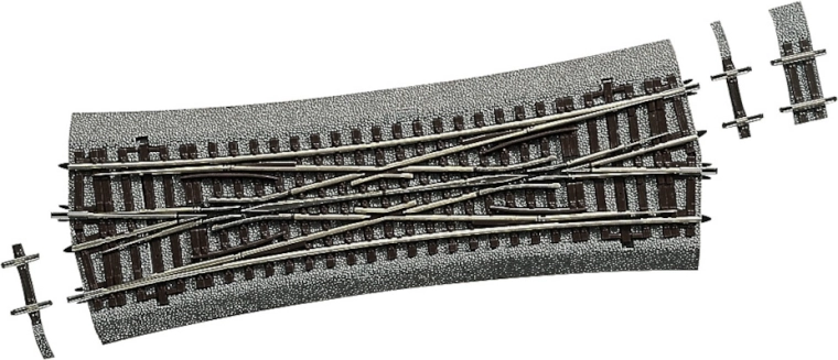 A ROCO LINE DKW15 keresztező váltó aljzattal két egyenes G1 sínt (hossz 230 mm) kombinál, 15°-os szöget zárva be, 1050 mm elágazási sugárral. A Bäsler-féle konstrukciót valósítja meg külső nyelvű kivitelben, és a teljes polarizációnak köszönhetően akadálytalan futást biztosít még alacsony sebességnél is.