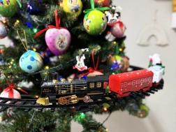 Ez a dekoratív vonat mozgó, fényekkel ragyogó jelenetet teremt a fája körül, akár egy karácsonyi filmből. A fény- és hanghatásos mozdony a körpályán halad, miközben a „Merry Christmas” feliratú kocsi és a Santa-s szán fokozza az ünnepi hangulatot. A 2 sebességnek köszönhetően a nyugodt ringatózástól a lendületesebb körig igénye szerint állíthatja a tempót.