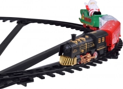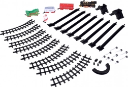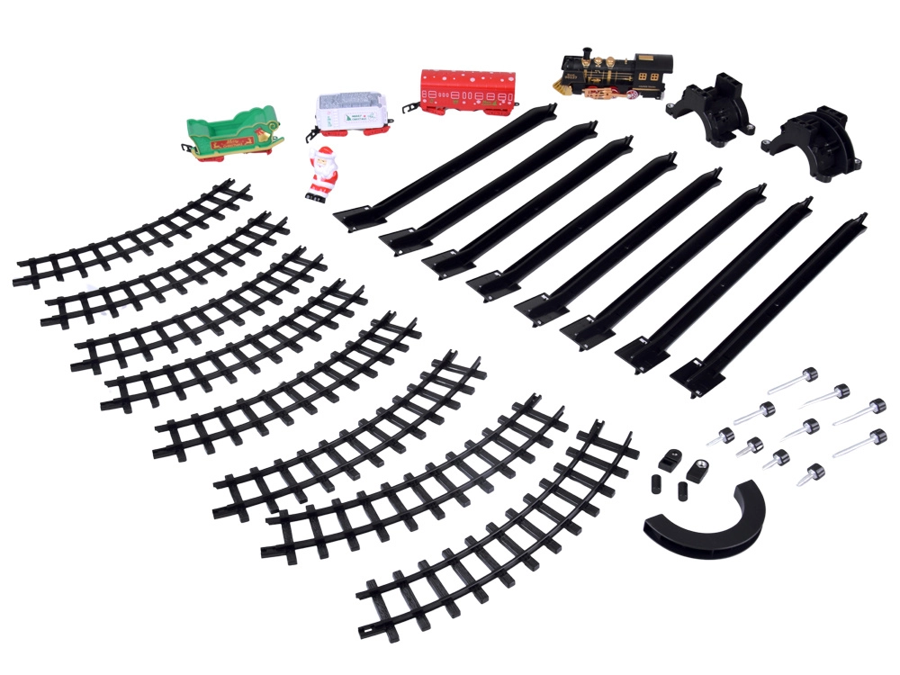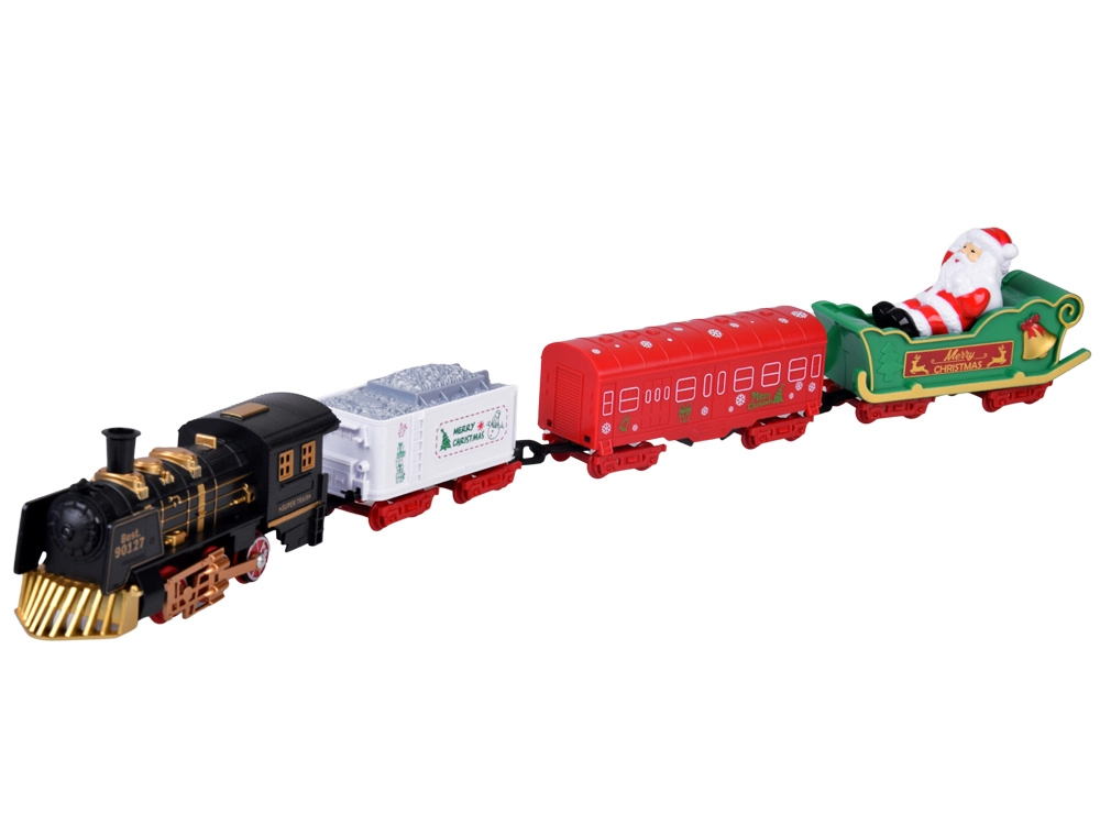 - Mozdony + 3 kocsi (fehér nyitott kocsi, piros kocsi, zöld szán Santa-val)
