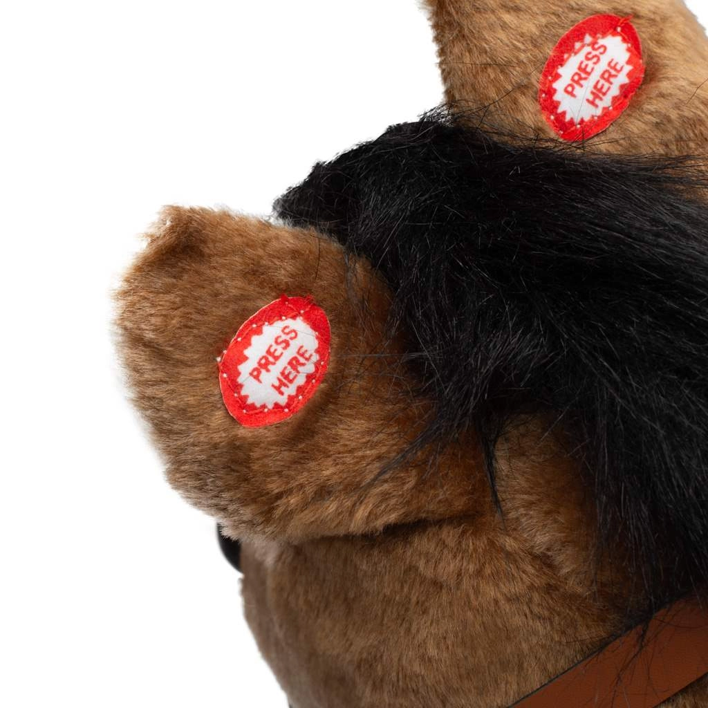 Fedezze fel a gyermekhintázás varázsát a barna színű PlayTo hintalóval. Ez a bájos plüss ló puha, kényelmes felülettel, stabil fa talpakkal és interaktív fülecskékkel készül, amelyek megnyomására a „Esik, esik” dal cseh és szlovák változata szólal meg. A masszív szerkezetnek és a formázott ülésnek köszönhetően a lovaglás biztonságos és kellemes, miközben a játék fejleszti a mozgáskoordinációt és támogatja a gyermekek fantáziáját.