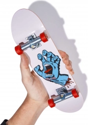 A Tech Deck handboard SANTA CRUZ maxi 27 cm a gördeszkázás autentikus élményét nyújtja praktikus, nagyobb méretben. Az előre összeszerelt deszka Screaming Hand grafikával, fém truckokkal és tartós kerekekkel lehetővé teszi a valósághű trükkvégrehajtást és a stabil irányítást.