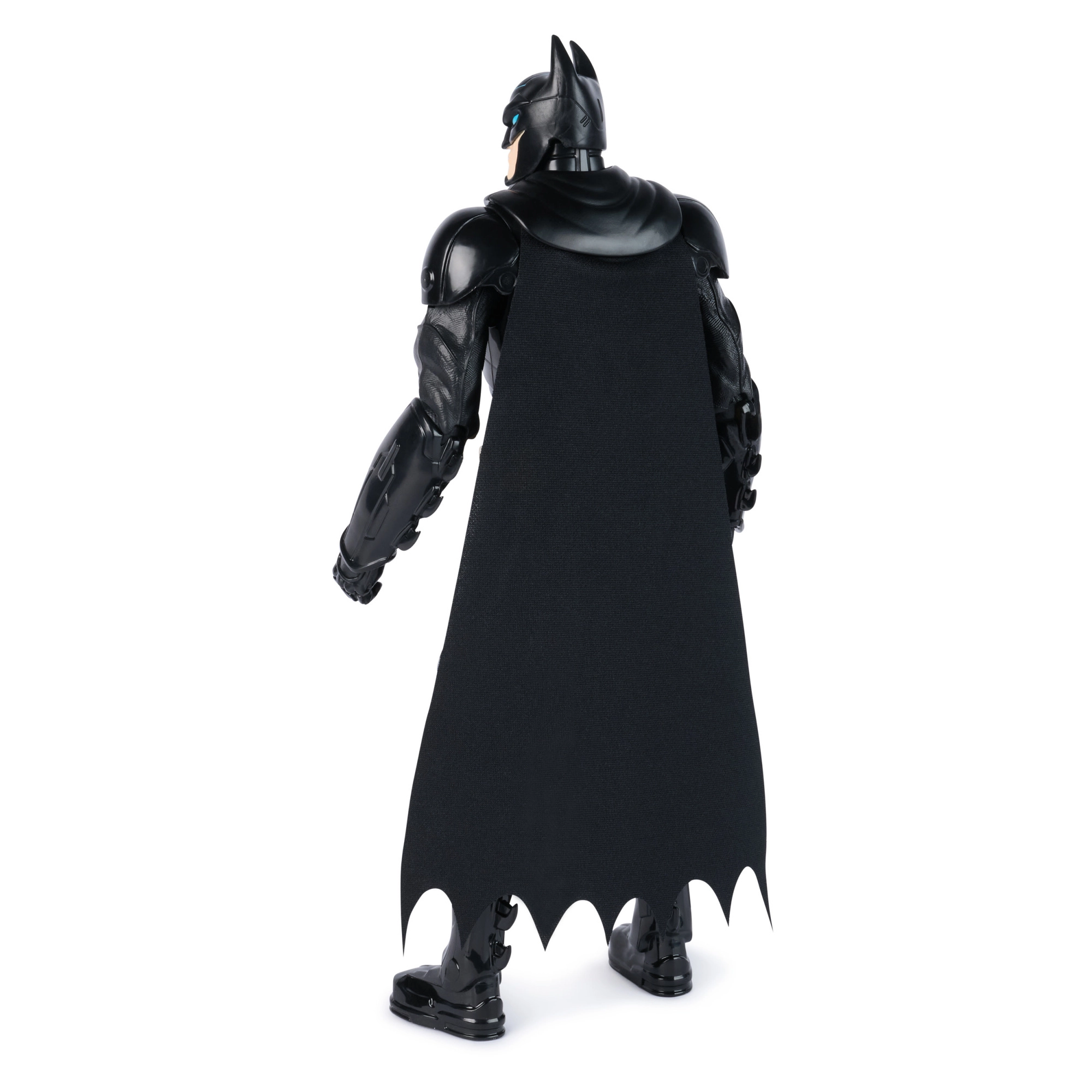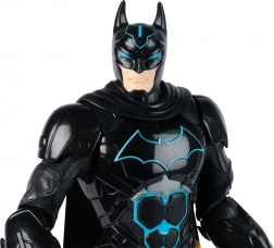 A fekete páncél kék akcentusokkal, a sárga öv és a denevérembléma kiemelik a DC COMICS ikonikus stílusát.