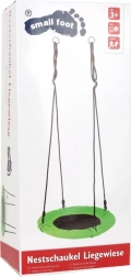 A zöld SMALL FOOT gólyafészek függőhinta bármely kertet, teraszt vagy gyerekszobát a nyugalom és a szórakozás oázisává varázsol. Puha, kényelmes pereme és kerek formája biztonságos, meghitt helyet nyújt olvasáshoz, pihenéshez és hintázáshoz. A fém karikák megkönnyítik a gyors felakasztást, a tartós anyagok pedig hosszú élettartamot biztosítanak.