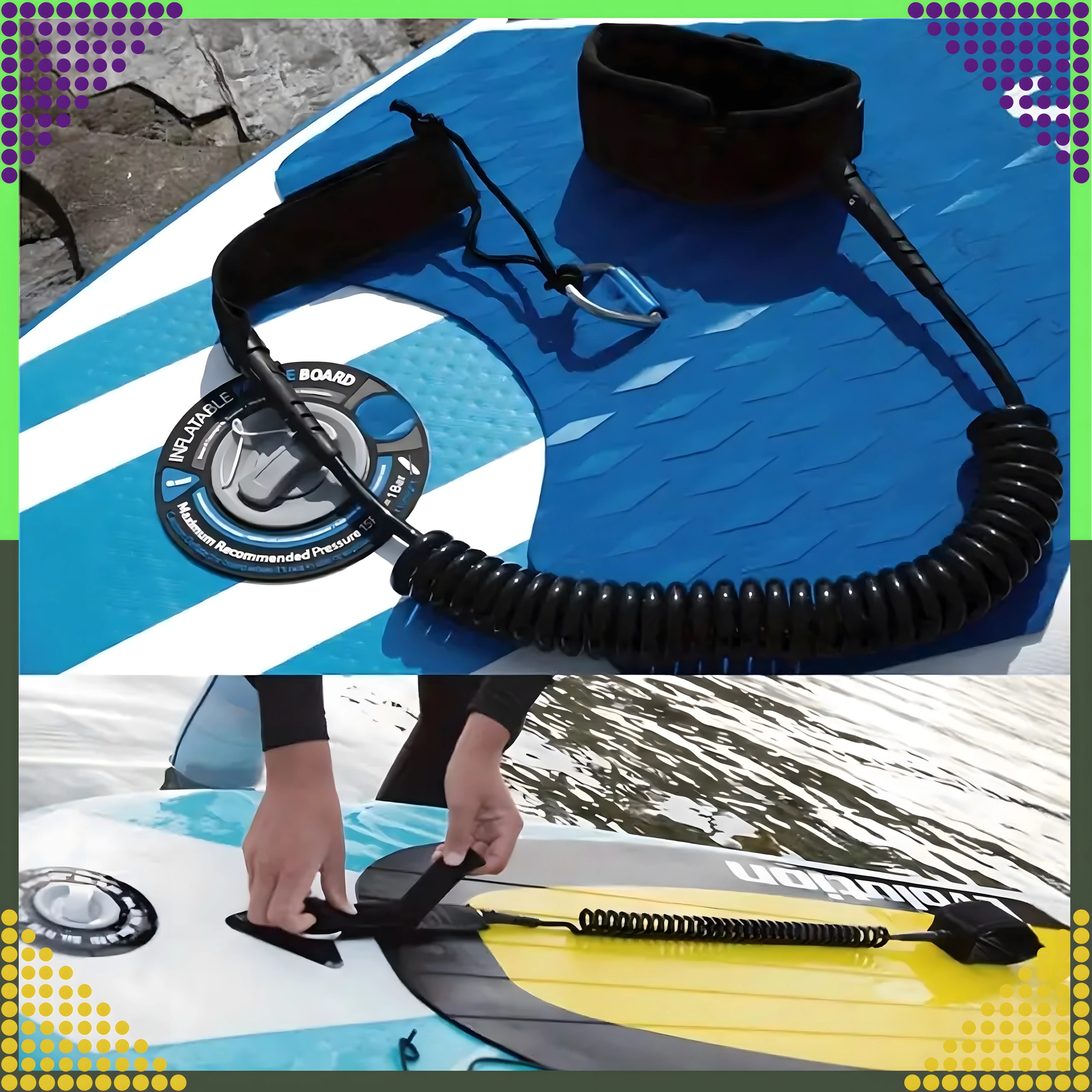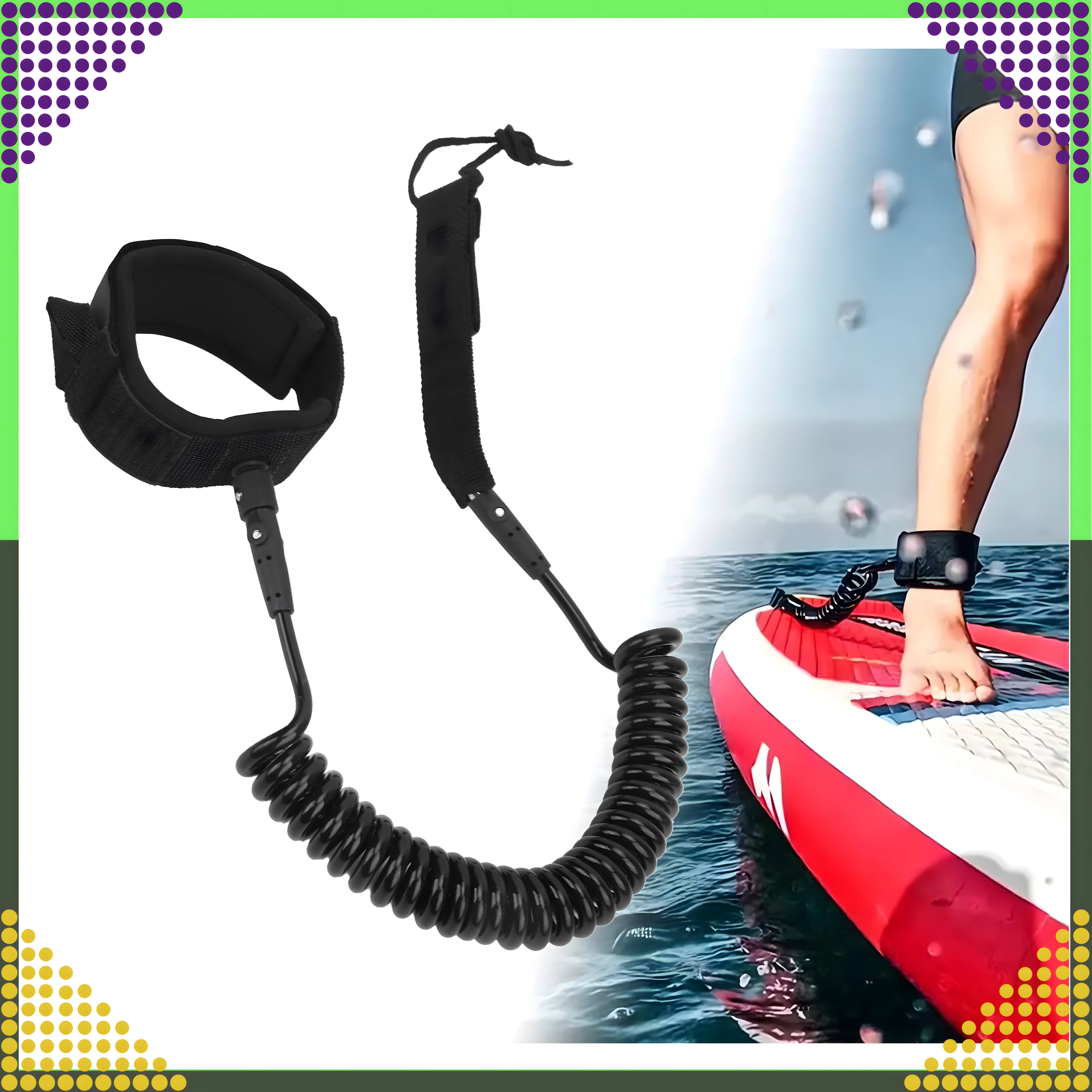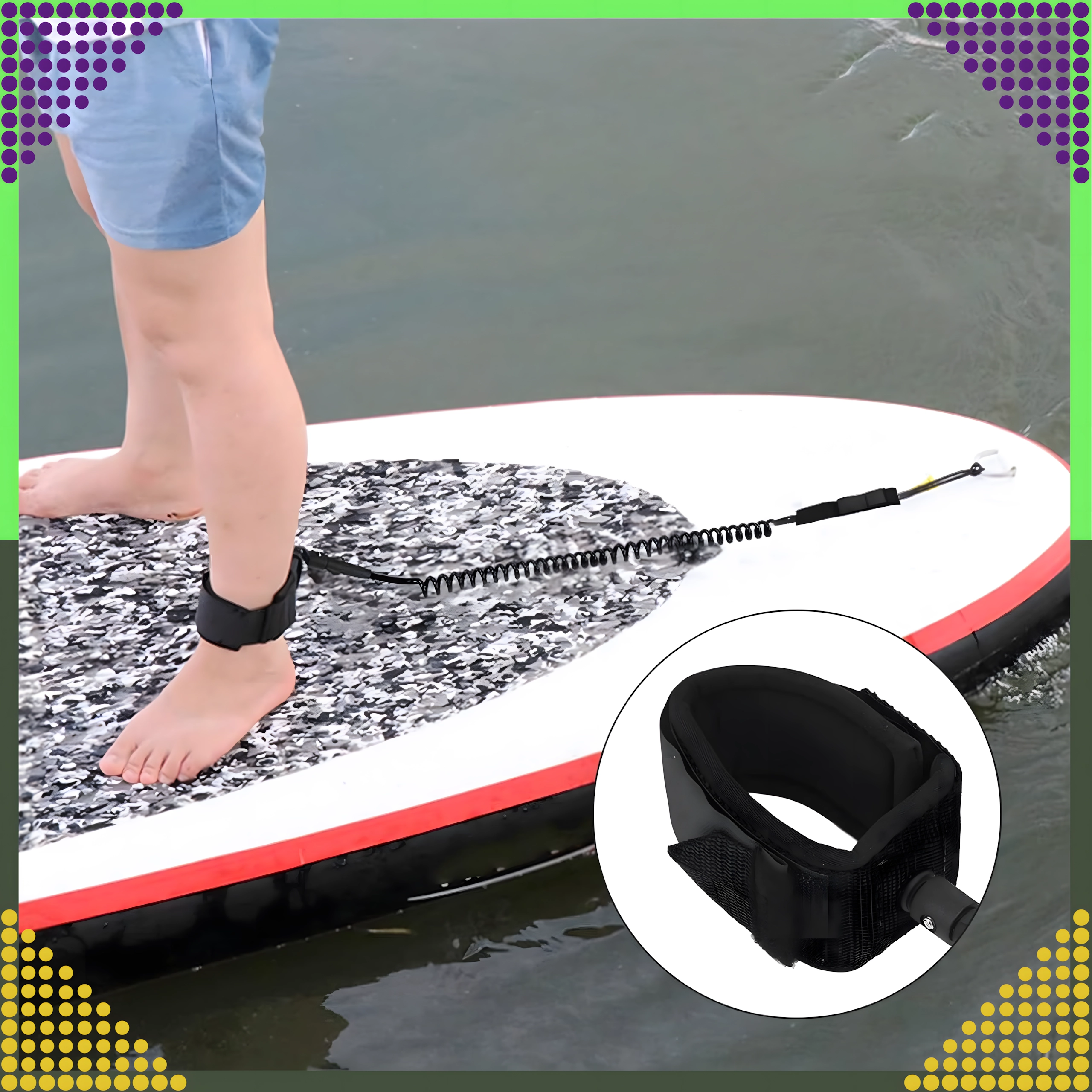 Ez a biztonsági SUP leash alapvető kiegészítő minden paddle boardozó számára. A spirál TPU zsinór csökkenti a vízben az ellenállást és mérsékli a vonszolást, míg a puha, párnázott bokamandzsetta tépőzárral hosszabb meneteknél is stabilan és kényelmesen tart.
