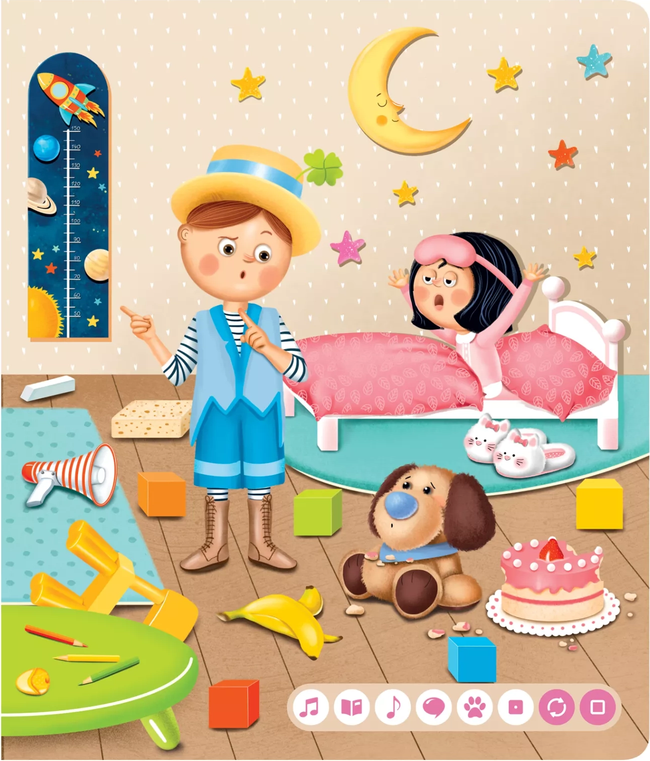 Részét képezik a vidám párbeszédek, a varázslatos hangok és Ňufáček utánozhatatlan humora. A könyv több mint 1 600 hangsávot és 8 tematikus dalt tartalmaz – minden kétoldalas részen egyet. Hangok: Barbora Waschingerová, Lukáš Kunz, Jaroslav Mottl, Jake Maloney, Winnie Maloney és Barbora Munzarová.