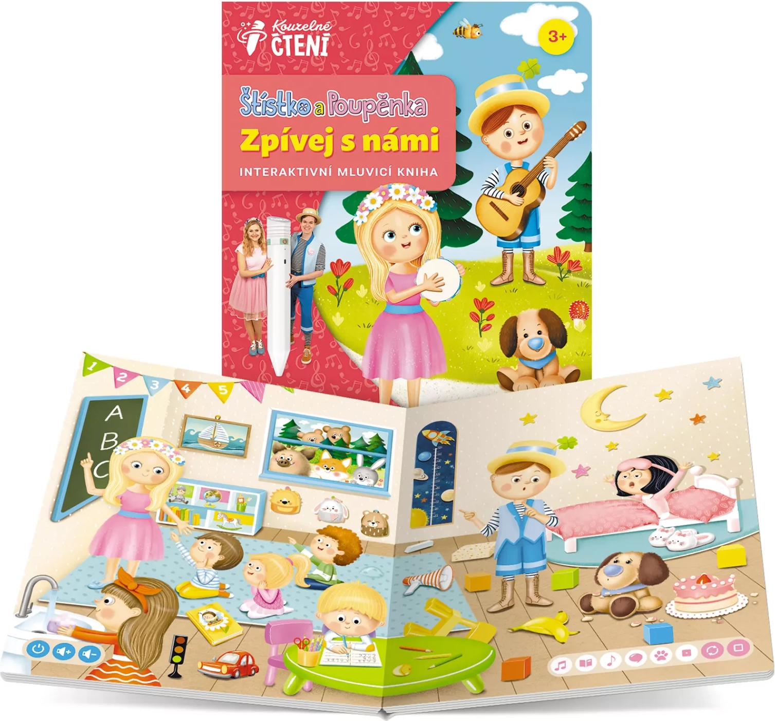A Štístko és Poupěnka – Énekelj velünk könyv olyan kedvelt dalokat hoz a gyerekeknek, mint a Brontosaurus, Parádé vagy Mozgasd a csontjaid, valamint mesés történeteket és játékos feladatokat. A 16 oldalon a gyerekek ellátogatnak az óvodába, a parkba, a mesés erdőbe, a színházba, a tornaterembe és a farmra, miközben megtanulják az első betűket, számokat, színeket és megismerkednek a hangszerekkel.