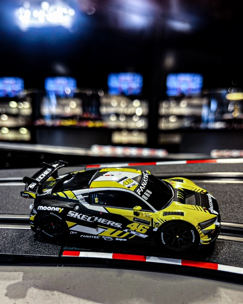 Stílusos autó GO!!! autópályákhoz 1:43 méretarányban, az ikonikus versenyző VALENTINO ROSSI inspirációjával. Megbízható érintkezést kínál a dupla keféknek köszönhetően, kiváló stabilitást a magnóval és pontos vezetést a vezetősín révén.