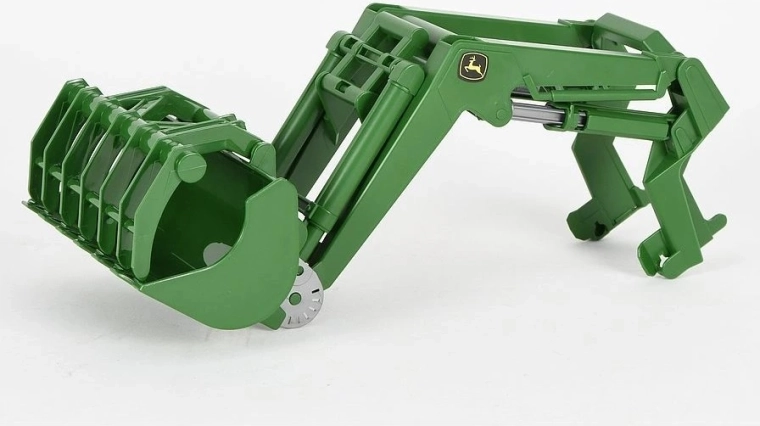 A BRUDER márka John Deere 7R traktor modelljeihez készült pót homlokrakodó visszaadja modelljének a valósághű megjelenést és a teljes funkcionalitást. A precíz kivitelezésnek köszönhetően a szerelés egyszerű, és tökéletes kompatibilitást biztosít. A Németországban gyártott, tartós műanyag bírja a gyakori játékot otthon és a szabadban is.