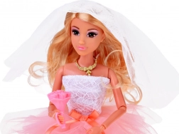 A baba kiváló a képzeletbeli játékhoz, a finommotorika és a kreativitás fejlesztéséhez. A hosszú, puha szőke haj hívogat a fésülésre és az elegáns frizurák készítésére, míg a kiegészítők, mint a csokor, a nyaklánc és a magassarkú cipő teljessé teszik az összeállítást.