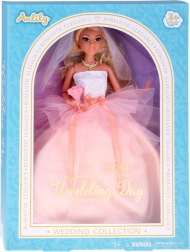 Az elegáns ANLILY Wedding Day esküvői baba lenyűgözi a gyerekeket gyönyörű részleteivel és a fantázia támogatásával. Hosszú, szőke haja könnyen fésülhető, artikulált karjai és lábai mozgathatók, és csipkés felsőt visel többrétegű tüllszoknyával rózsaszín-barack árnyalatban. A stílust fehér fátyol, arany nyaklánc és esküvői csokor egészíti ki – ideális mesés esküvői szerepjátékokhoz.