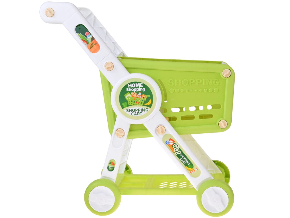 A boltosdi még sosem volt ilyen szórakoztató. A gyermek bevásárlókocsi úgy lett tervezve, hogy könnyen irányítható, biztonságos legyen, és a állítható magasságú fogantyúnak köszönhetően alkalmazkodjon a gyermek magasságához. A perforált kosár rengeteg árut elnyel, a alsó polc pedig extra helyet kínál a kedvenc játékoknak vagy élelmiszereknek.