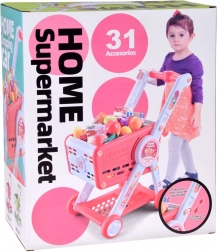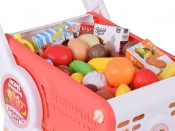 A piros–fehér gyerek bevásárlókosár ideális boltos játékhoz, játékkonyhába és otthoni szerepjelenetekhez. A masszív, mégis könnyű, négykerekű kivitel sima gurulást biztosít a lakásban, míg az alsó polc további helyet ad a „nagyobb vásárlásokhoz”. A csomag színes, műanyag élelmiszerkészletet tartalmaz, amely valósághű hatású és felfedezésre csábít.