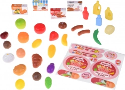 A szett része gyümölcs, zöldség, pékáru, felvágottak, italok és kis dobozok. A valósághű formák és színek támogatják a tanulást és a képzelőerőt.