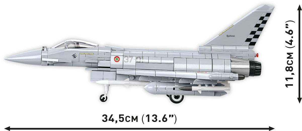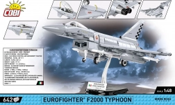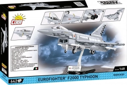 Építsd meg az ikonikus, többfeladatú vadászgépet, a EUROFIGHTER F2000 TYPHOON-t 1:48 méretarányban, 642 prémium COBI kockából. A modell nyitható pilótafülkét, mozgatható felületeket és levehető futóművet kínál a tiszta kiállításhoz a névtáblás állványon. A kiváló minőségű nyomatok nem fakulnak és nincsenek matricák, az építés az intuitív útmutatónak köszönhetően a kezdők számára is könnyű.