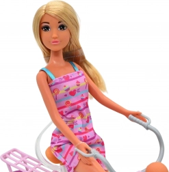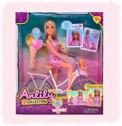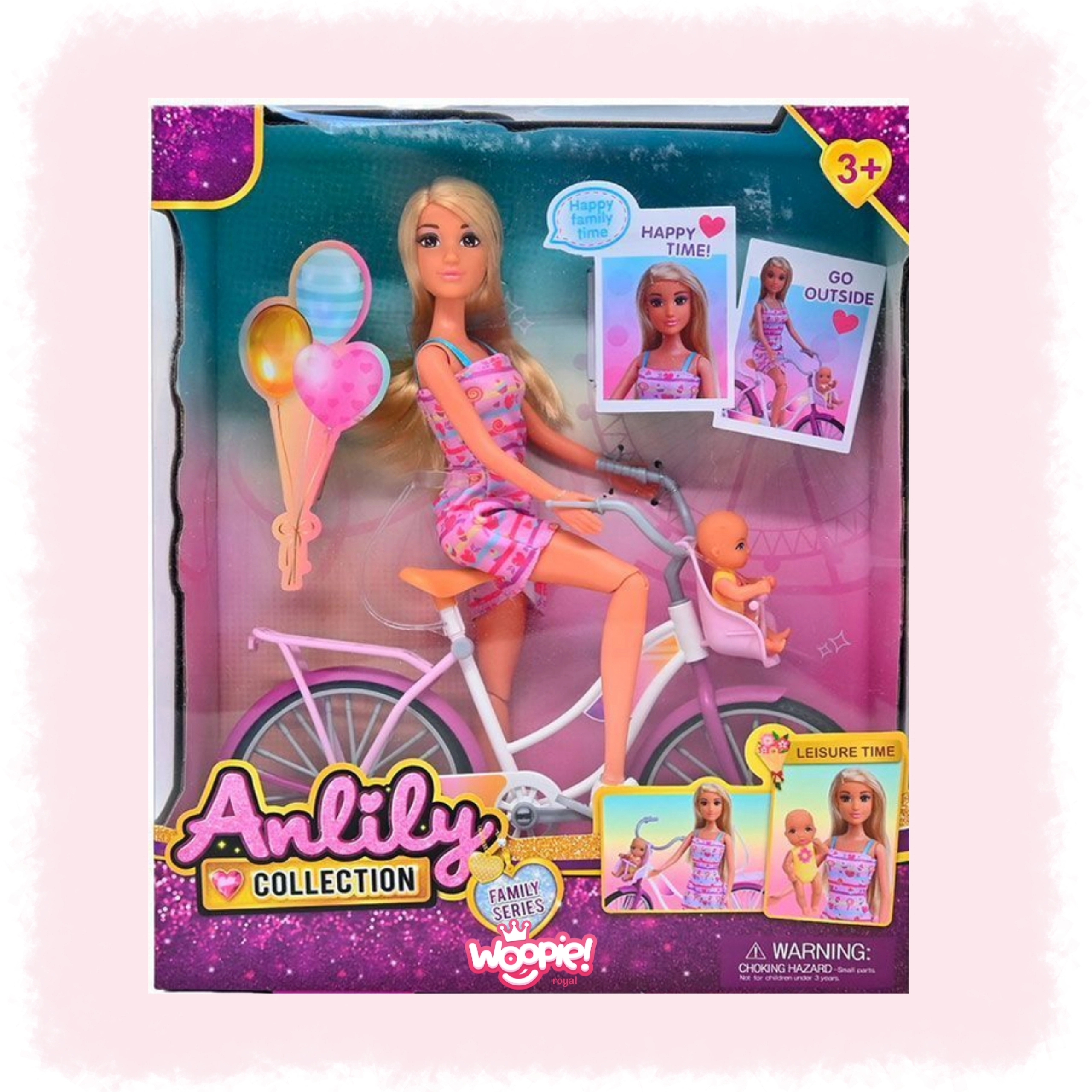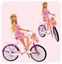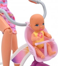 Az anyuka-baba szett elegáns városi kerékpárral remek választás a szerepjátékok kis rajongóinak. A hosszú, fésülhető hajú baba mozgatható végtagokkal rendelkezik, a kisbaba gondozásra kész, a kerékpár pedig gyereküléssel van felszerelve a közös kirándulásokhoz. A minőségi, biztonságos kivitel lekerekített élekkel kényelmes és biztonságos játékot biztosít.