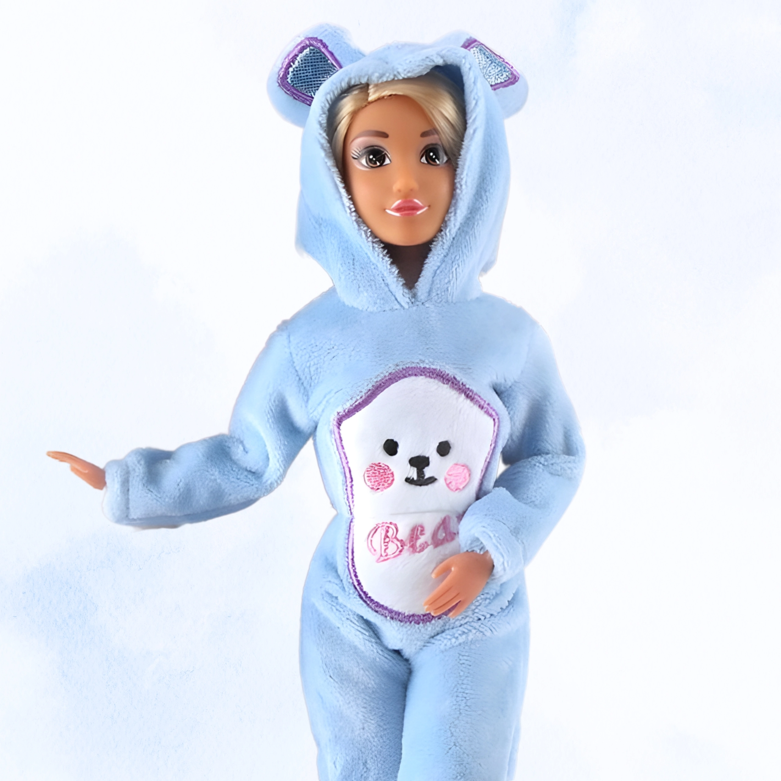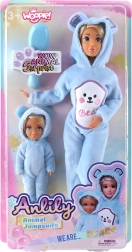 A WOOPIE márka két aranyos babából álló készlete kreatív játékot kínál 3 éves kortól. A csomagban egy nagy és egy kicsi baba található, puha, kék, medvés overálban, kapucnival és fülecskékkel. A babák mozgatható karokkal és lábakkal rendelkeznek az egyszerű öltöztetéshez és pózoláshoz – remek ajándék az állatminták kis rajongóinak.