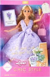 Fedezd fel a divat és a fantázia világát a kb. 30 cm magas Woopie Lily babával. Az elegáns, levendulaszínű ruha romantikus szívecskékkel és derékon virágdísszel minden játék sztárjává teszi Lilyt – az ünnepi alkalomtól a mindennapi kalandokig. A hosszú szőke haj fésülhető és különféle frizurákba formázható.