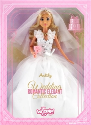 Merüljön el az elegancia és romantika világában Lily menyasszonyi babával. A gyönyörű menyasszony fehér, tüllszoknyás ruhában, díszes fűzős felsőrésszel és finom fátyollal a részletgazdag kidolgozással nyűgöz le. Kezében bájos rózsacsokrot tart, hosszú, világos haja pedig fésülésre és formázásra csábít.
