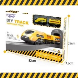 A 92 elemnek köszönhetően a gyerekek szabadon variálhatják a sínek elrendezését és új köröket tervezhetnek. A mágneses kapcsolók megkönnyítik a két vagon csatlakoztatását, míg a mellékelt építőgépek, a munkás figura és a peron állomásépülettel élettel teli jelenetet teremtenek. A szett támogatja a finommotorikát, a logikus gondolkodást, a kreativitást és az önállóságot.