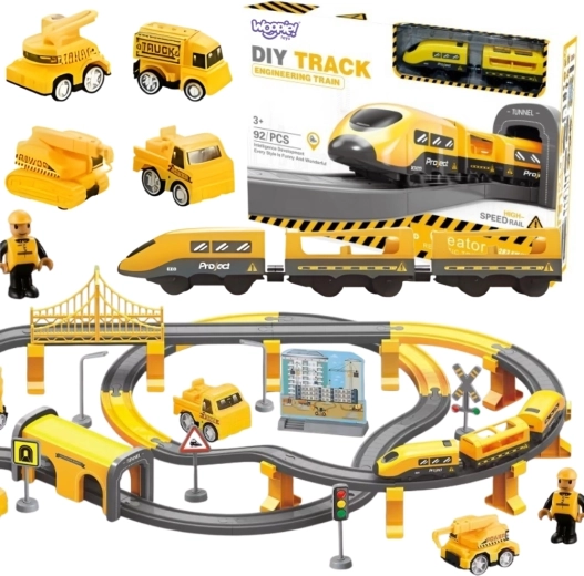 A WOOPIE elektromos vonatpálya a kis építőknek 92 elemmel, sárga, elektromos meghajtású vonattal és élethű hangokkal érkezik. A hídnak, alagútnak, jelzőlámpáknak és az építőjárműveknek köszönhetően a gyerekek saját pályákat és teljes várost alkothatnak. A mágneses vagonkapcsolat és a pálya változatos elemei órákig tartó kreatív szórakozást biztosítanak, miközben fejlesztik a finommotorikát, a logikát és az önállóságot.