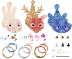 A szett puha filcből készült nyuszit, macit és szarvast tartalmaz. A gyerekek saját maguk állítják össze, díszítik és fűzik fel az ékszereket gyöngyökkel.