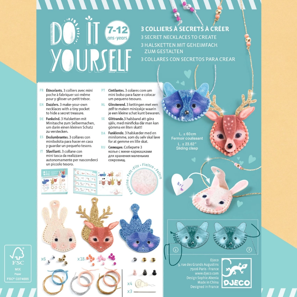 Ez a DIY szett mindent tartalmaz három finom állatos nyaklánc elkészítéséhez. Az áttekinthető, illusztrált útmutató segítségével a gyerekek lépésről lépésre összeillesztik és összevarrják a puha filc medálokat, gyöngyökkel díszítik, majd zsinórra fűzik. Az eredmény egyedi kiegészítő, amely remek ajándék barátoknak, vagy különleges dísz a hétköznapokra.