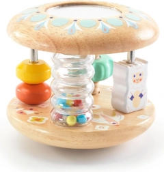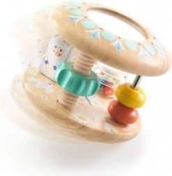 A Baby Tutti átgondolt fa játék, amely könnyen megfogható, kellemesen csörög, és letéve gördül. A gyerekeket lenyűgözi az átcsorgó színes gyöngyök látványa az átlátszó csőben, a kis tükör az első felfedezésekhez és a csúszó gyűrűk a pálcákon. A játék támogatja a kéz–szem koordinációt, és motivál a kúszásra és a forgásra.