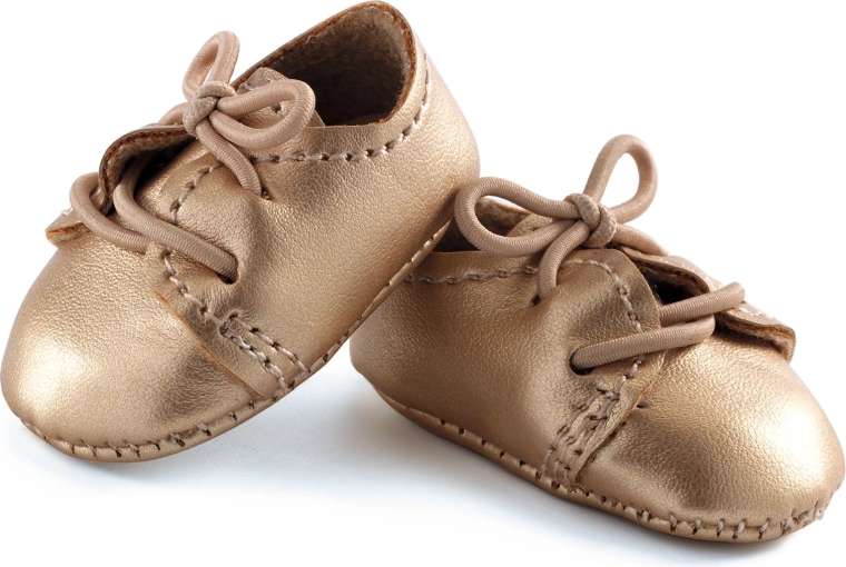 Varázsoljon különleges hangulatot a POMEA babáknak ezekkel a fűzős, arany babacipőkkel. A puha kivitelnek és az átgondolt formának köszönhetően a cipők könnyen felhúzhatók és jól tartanak a kis lábacskán, így ideálisak a mindennapi játékhoz és öltöztetéshez. A fényes, metálos hatás elegáns és modern megjelenést kölcsönöz, amely nagyszerűen illik különféle ruhácskákhoz és kiegészítőkhöz.