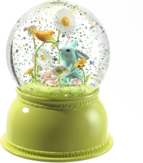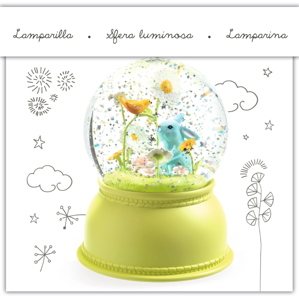 Csillogó hógömb lámpa aranyos nyuszival a DJECO-tól, amely a gyerekszobát varázslatos és megnyugtató térré alakítja. Finoman szikrázik, kellemes hangulatot teremt, és ideális éjjeli fénynek gyerekeknek.