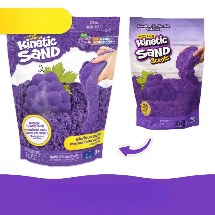 A Kinetic Sand Scents érzékszervi élményt nyújt: puha, formázható homok kellemes szőlőillattal, amelyet a gyerekek imádni fognak. Speciális összetétele egyben tartja a szemcséket, így a homok kevésbé pereg, a vele való munka pedig tiszta és kényelmes. Ideális kreatív játékhoz otthon – formázzon betűket, építményeket, homokformákat és fantáziadús alkotásokat.