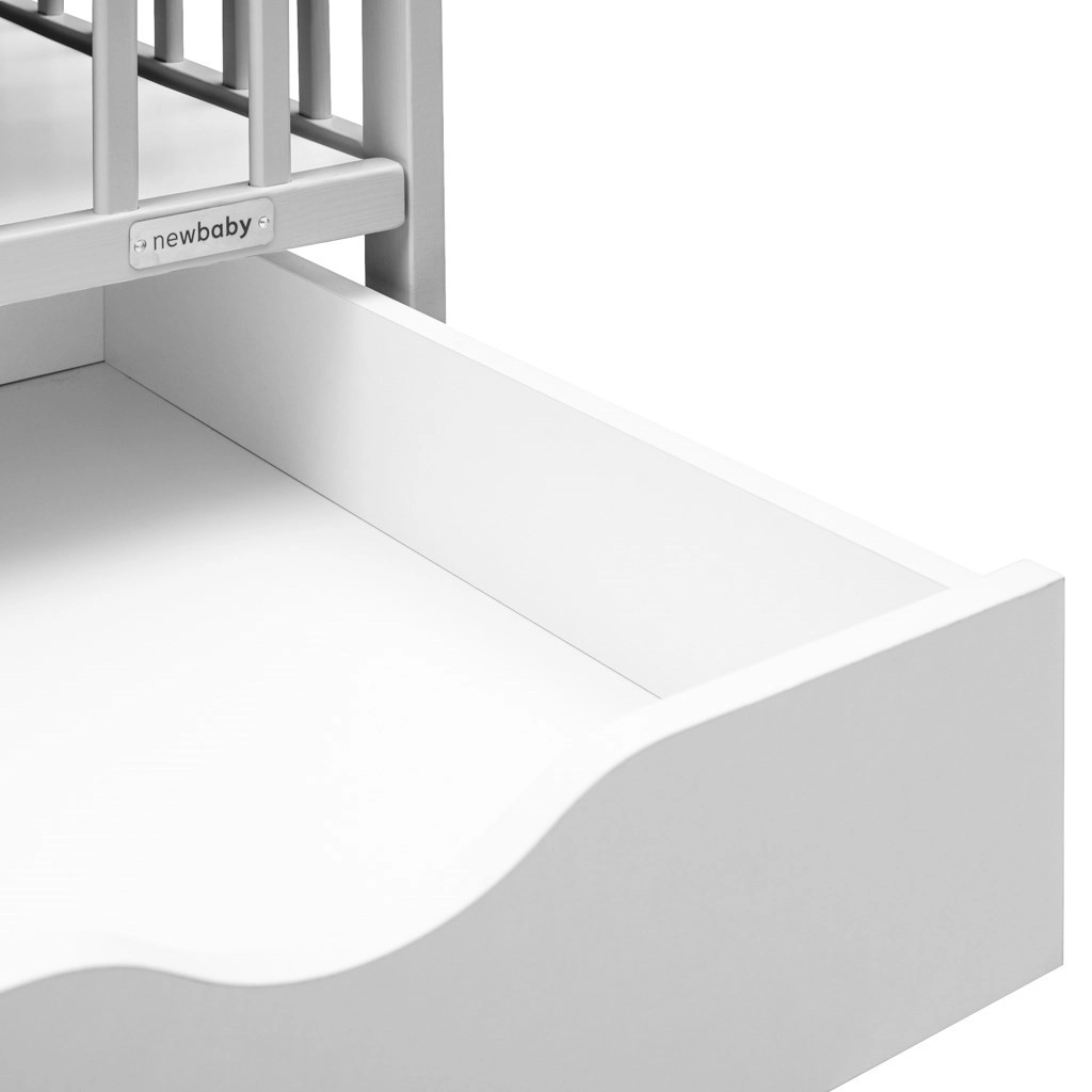 Az elegáns, szürke színű NEW BABY Lilly gyerekágy a biztonságot, a praktikus tárolóhelyet és a modern dizájnt ötvözi. FSC tanúsítvánnyal rendelkező minőségi fenyőfából készül, vízbázisú lakkozással, amely kíméletes a gyermekekhez és a környezethez. 3-féle rácsmagasságot, kivehető pálcákat a gyermek önálló ki- és bejutásához, valamint tágas, sínes fiókot kínál az átlátható tároláshoz.