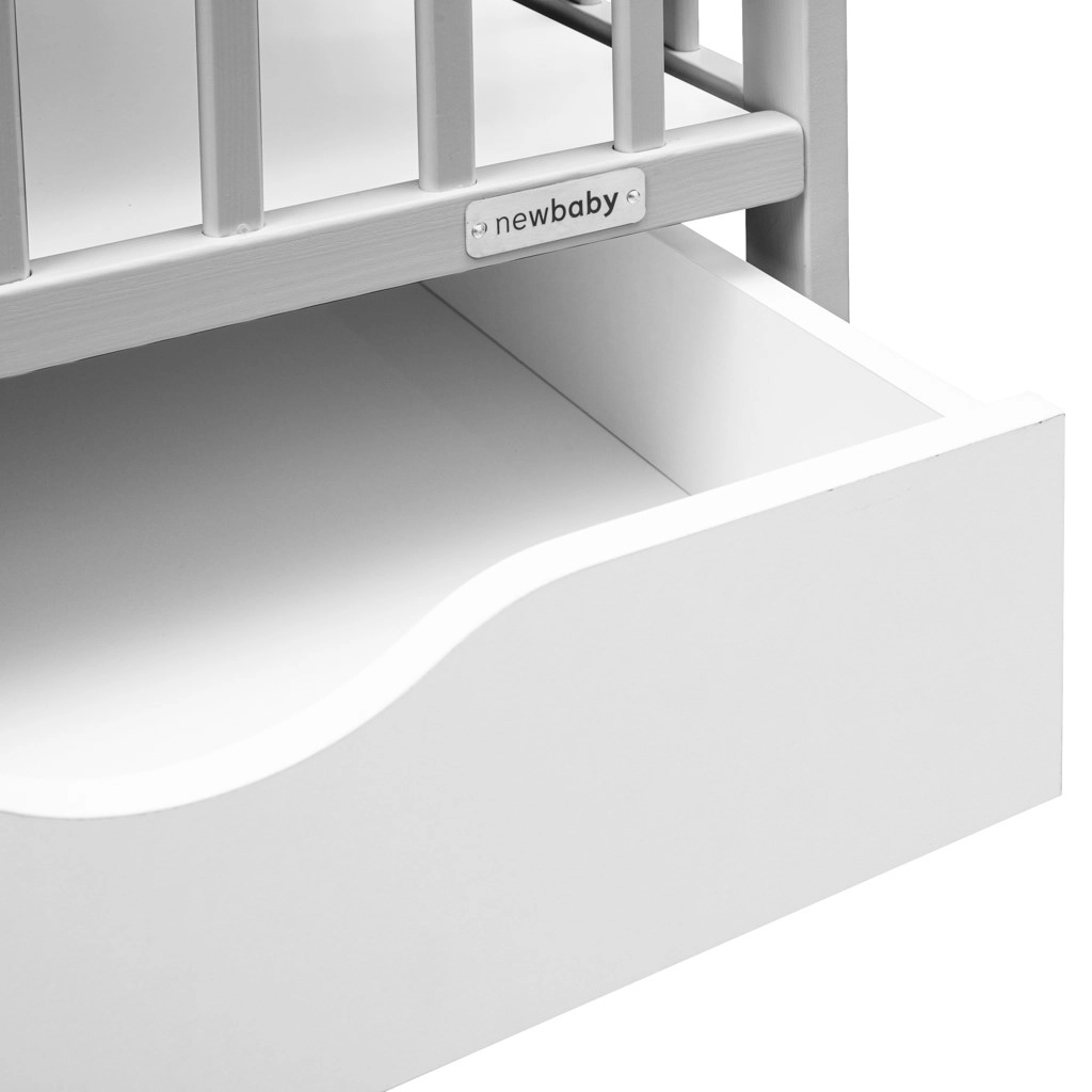 A NEW BABY Lilly kiságy megbízható választás bármely gyerekszobába. Az FSC tanúsítványú fenyőfa tartós szerkezete stabilitást és hosszú élettartamot biztosít, míg a környezetbarát, vízbázisú felületkezelés biztonságos az érzékeny gyermeki környezetben is. A semleges szürke árnyalat jól illeszkedik a modern bútorokhoz és könnyen kombinálható a kiegészítőkkel.