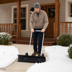 A kézi, kerekes hótoló ideális járdák, behajtók és udvarok tisztításához. Az ergonomikus, kétkezes fogantyú és a két nagy kerék megkönnyíti a hó egyenletes tolását megerőltető emelés nélkül. A 95 cm-es szélesség felgyorsítja a hosszabb szakaszok takarítását, a stabil vezetés pedig minimalizálja az ismételt áthaladásokat.