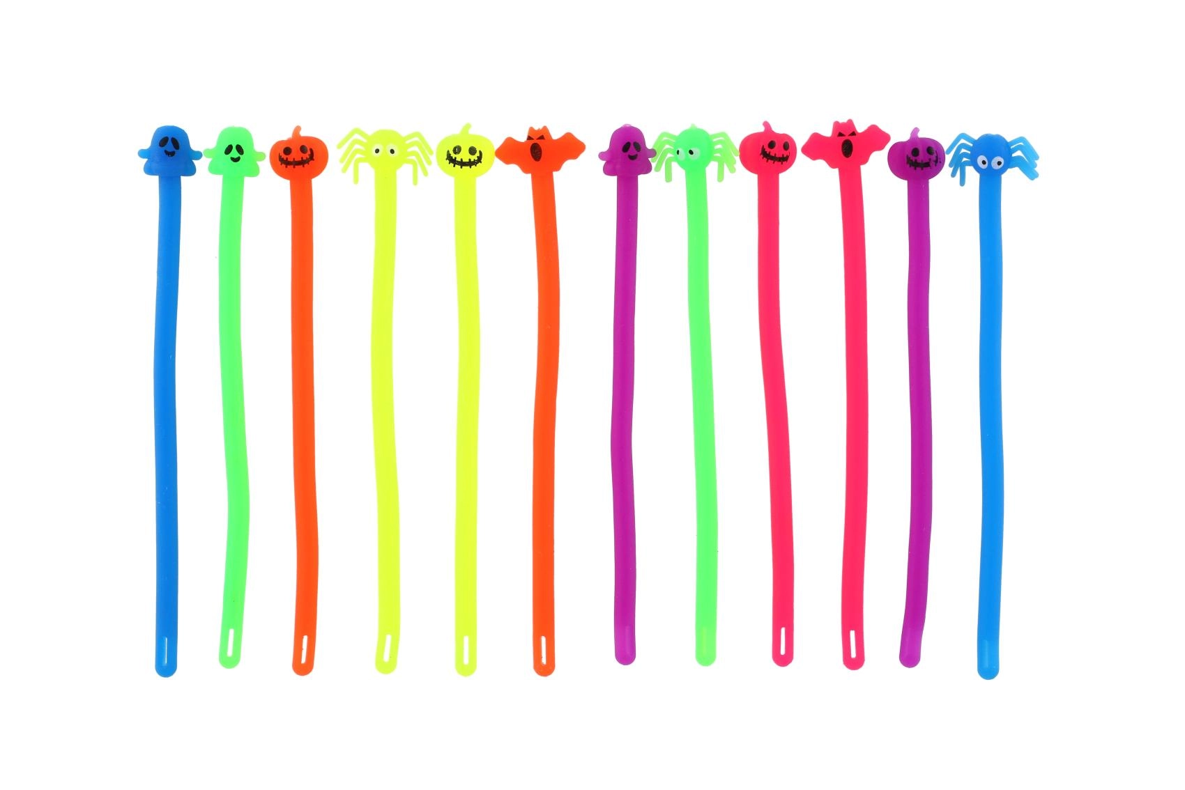 Szórakoztató antistressz játék halloweeni motívumokkal gyerekeknek és felnőtteknek. A puha szilikonnak köszönhetően nyújtható, hajlítható és csavarható, így segít oldani a stresszt, valamint támogatja a finommotorikát és a koncentrációt. A csomag 6 féle élénk színű változatot tartalmaz – szellemek, pókok, denevérek, tökök és más ijesztő figurák.