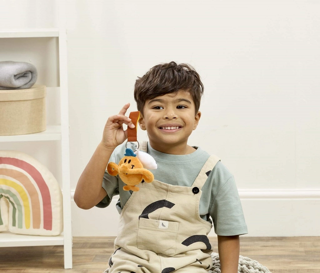 A puha plüss tapintása kellemes, míg az tartós fém karabiner a könnyű és biztonságos rögzítést garantálja. Ideális 18 hónapos kortól a felnőtt gyűjtőknek és a Roger Hargreaves-féle MR. MEN sorozat rajongóinak is.