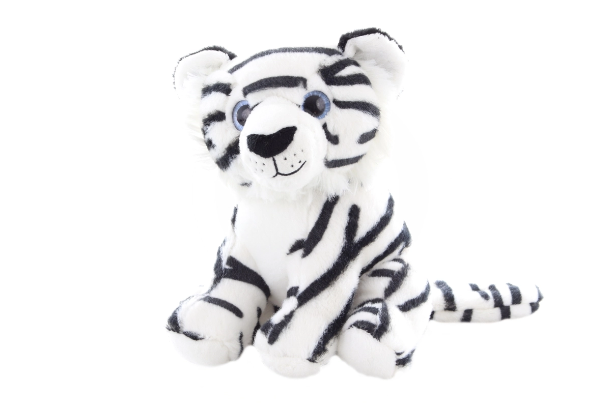 Aranyos, 18 cm-es plüss fehér tigris, ideális ölelgetni való a legkisebbeknek. Puha, már 0+ kortól biztonságos, és tökéletes ölelgetéshez és játékhoz otthon és útközben is.