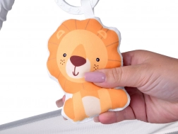 - függeszthető játékok tükörrel, napocskával és felhővel, valamint állatkákkal (oroszlán, elefánt, majmocska)