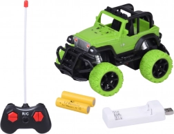 Élvezd az akciódús vezetést otthon és a szabadban is ezzel a strapabíró RC terepjáróval, élénk zöld színben fekete részletekkel. A nagy terepgumi kerekek biztos tapadást nyújtanak különböző felületeken, míg az első kerekek összetartásának/elfordulásának finomhangolása segít a pontos egyenesfutásban és manőverezésben. Két piros LED dióda az alvázon látványos hatást ad a menetnek.