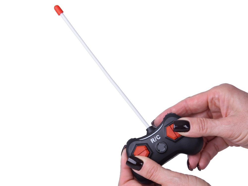 A kompakt vezérlő világos gombokkal és hosszú antennával lehetővé teszi az előre, hátra haladást, valamint a balra/jobbra kanyarodást. Ideális kezdőknek és gyerekeknek.