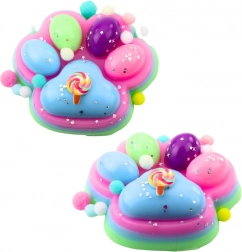 - 1× XXL gniotek; dekoratív nyalóka figura a felületen; színes golyócskák és konfetti szórás
