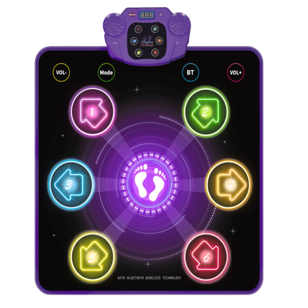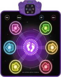 Az interaktív táncszőnyeg gyerekeknek egyesíti a mozgást, a zenét és a tanulást. A Bluetooth kapcsolaton keresztül lejátszhatod kedvenc dalaidat okostelefonról, az 5 játékmód a gyermek életkorához igazítja a nehézséget, a LED-effektek és a 6 iránygomb pedig szórakoztató kihívássá teszik a táncot. A biztonságos használatról a puha, csúszásmentes és vízálló felület gondoskodik, a praktikus funkciók közé tartozik a hangerőszabályzás, a némítás és az alvó mód.