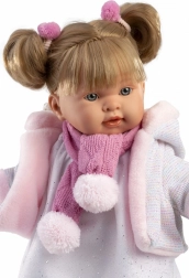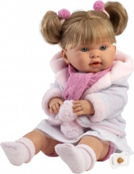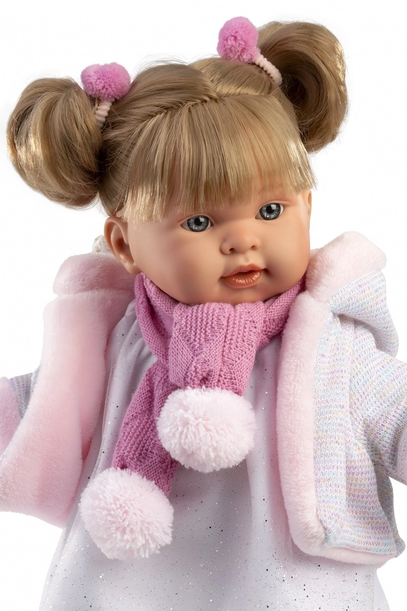 A LLORENS Alexandra baba Spanyolországban, kézzel készül, nagy figyelemmel minden részletre. Puha pamut testtel a kellemes öleléshez, valamint vinil kezekkel, lábakkal és fejjel rendelkezik, finom árnyékolással, szempillákkal és kifejező szemekkel. A cumi eltávolítása után a baba sírós hangokat ad ki, ami támogatja az empatikus és szerepjátékos tevékenységeket.