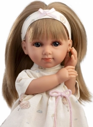 A 35 cm-es ELENA baba a LLORENS-től gondosan, kézzel készül Spanyolországban. Kiemelkedik finoman megformált arcvonásaival, élethű szempilláival és természetes hatású hajával. A puha test és a masszív vinil részek kombinációja kényelmes ölelgetést és könnyű pozícionálást biztosít játék közben.